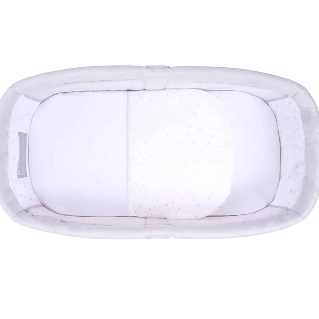 Suitable for overnight sleep, this crib is suitable from birth to 9kg (6 months approx.). The ultra-lightweight design makes it perfect for use anywhere round the home, and the double mesh sides provide optimal visibility of your little one and an ideal view of the surroundings for baby. With an ideal height of 74cm, the Air Motion ensures that you can easily access your little one anywhere and the included reflux wedge elevates your baby to help to decrease the symptoms of reflux.