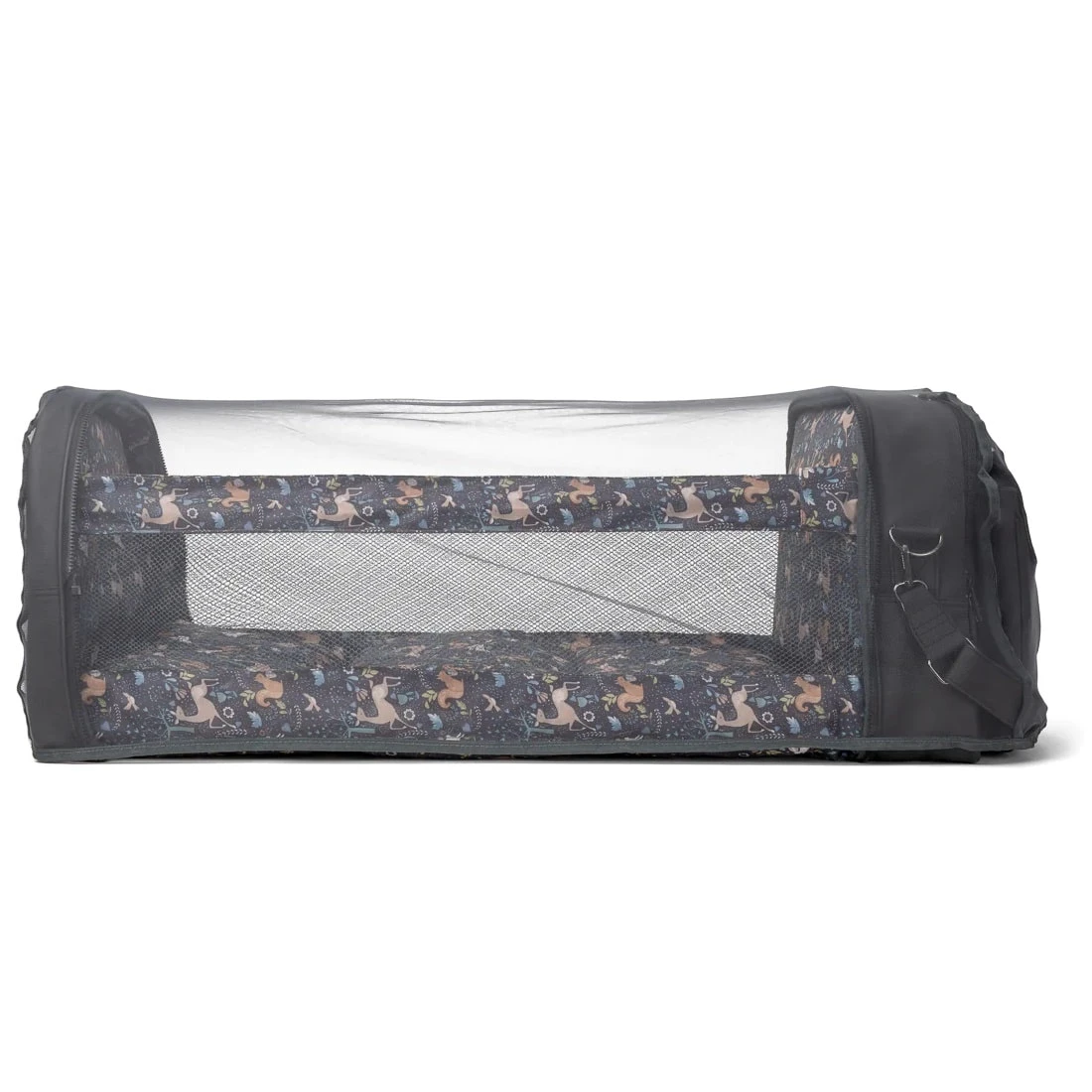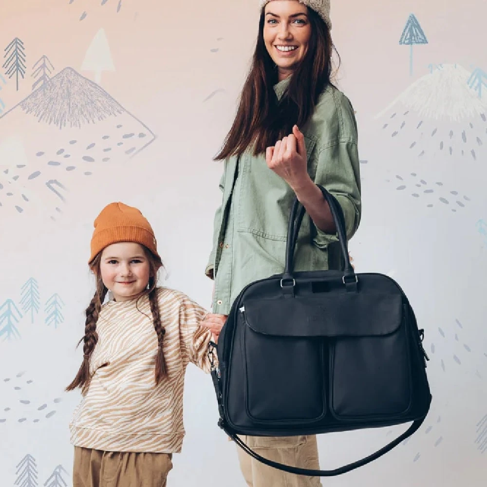 Bizzi Growin Baby Travel Crib Changing Bag Vegan Black is the perfect solution for busy parents on the go, ensuring nap time is convenient and stress free, wherever you may be.Β The unique fold out crib section is quick and easy to use, perfect for daytime naps and a great changing bag.