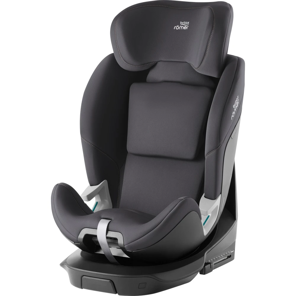 Britax SWIVEL Midnight Grey from birth to 7 years (125 cm), it’s your ticket to hassle-free car rides. With its 360° rotation, getting in and out is a breeze. Our cozy newborn insert pampers your newborn, while SWIVEL adapts as they grow to a schoolchild. It’s like a growth spell for comfort and safety.