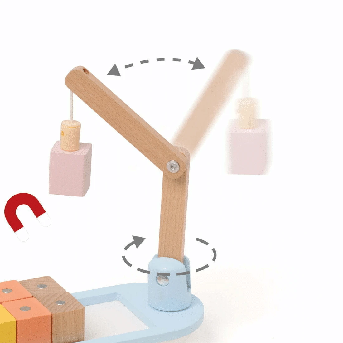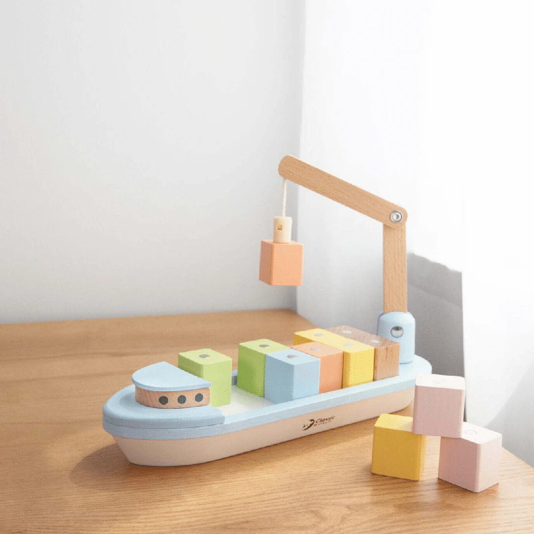 - They can stack and magnetically connect the wooden cargo blocks and imagine they are setting sail on the open ocean