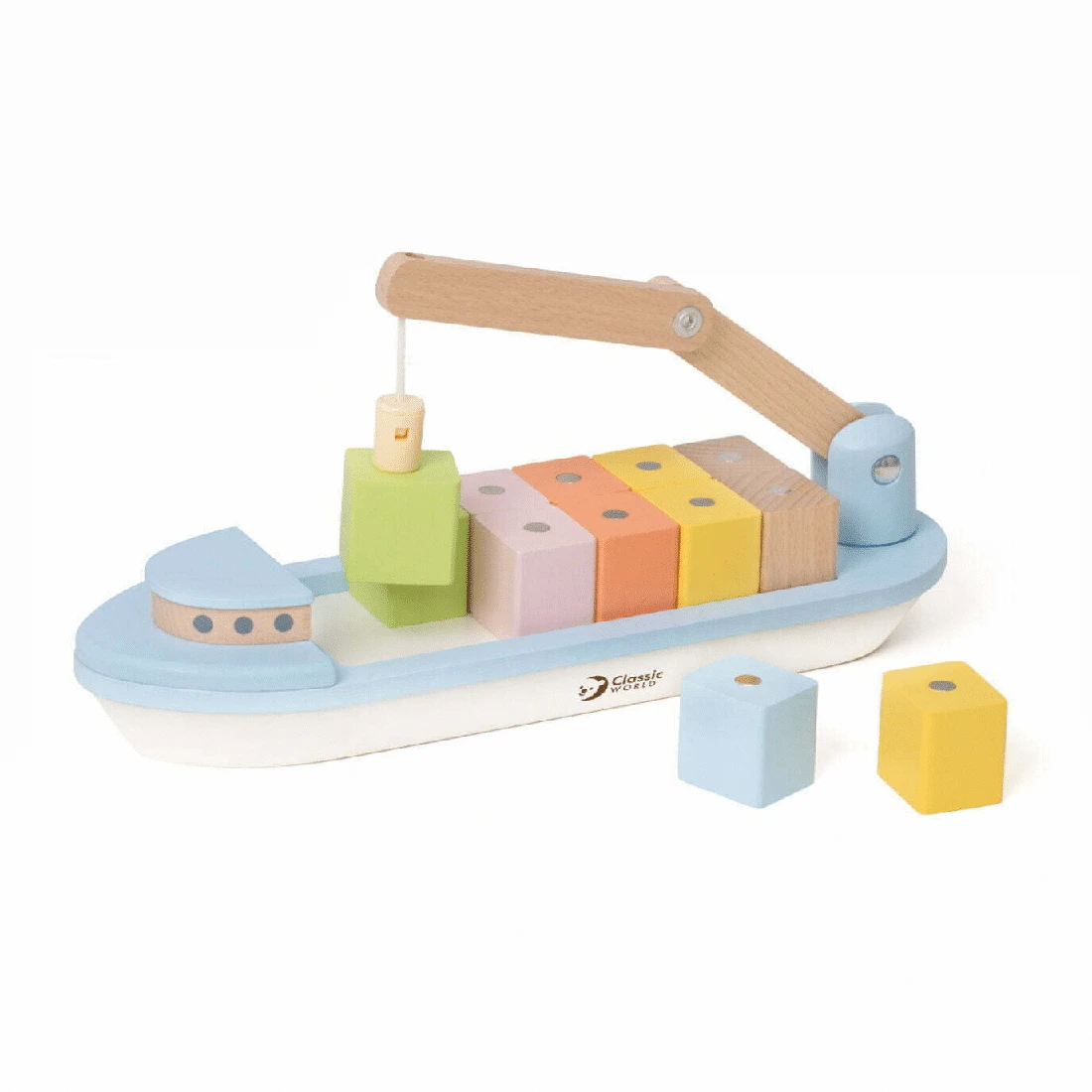 - This beautiful pastel-coloured wooden block boat is the perfect small interactive toy for young children