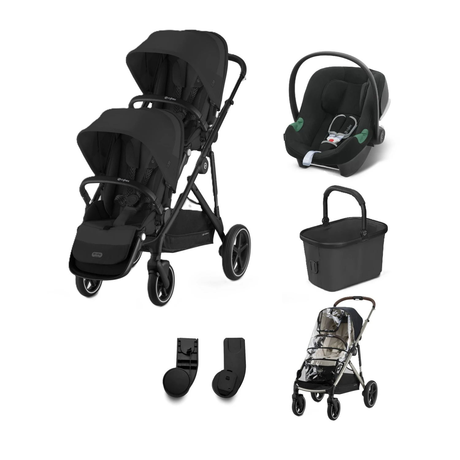 Cybex eGazelle S Twin Pushchair Travel System Bundle – Moon Black