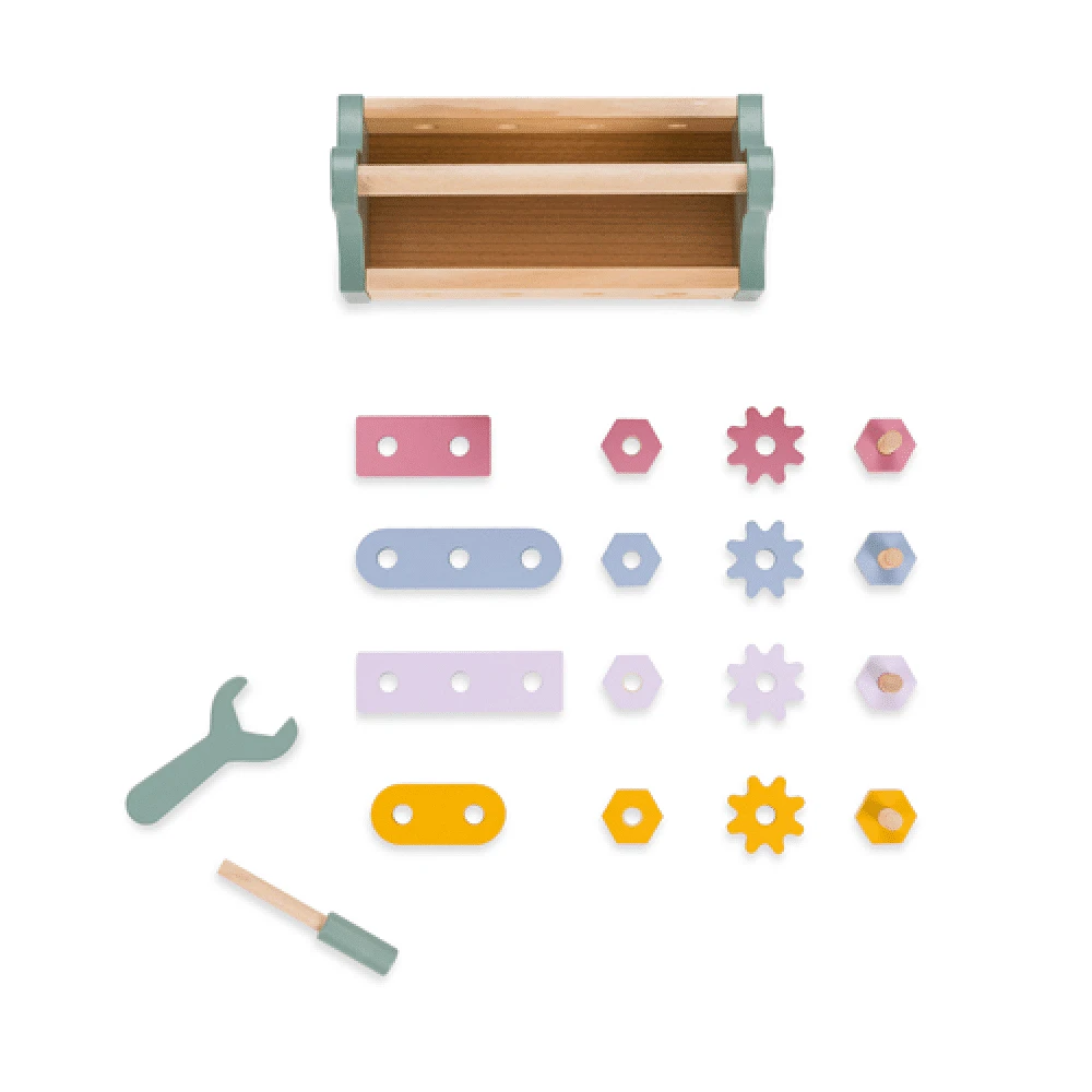 Thanks to the high quality workmanship, the tool box allows lots of fun from 24 months onward.