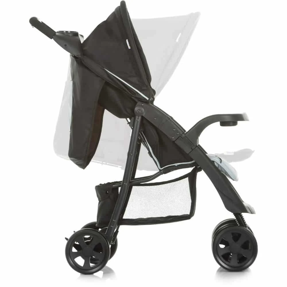 The Hauck Shopper Neo II Pushchair is lightweight and agile thanks to the swivelling and lockable front wheels. The adjustable backrest can be adjusted to a lying position using just one hand while the footrest is also adjustable. The folded dimensions are so compact that it can fit in the smallest of boots. The 5-point belt will keep baby safe whilst on the move while the parking brake offers a secure reliable hold. Keep bottles, refreshments and bits and pieces on the two drinks/accessories shelves and store your shopping or baby accessories in the large basket. The large sunhood protects baby from all weather whilst parent can still keep a constant eye on your child through the ventilated viewing window in the canopy