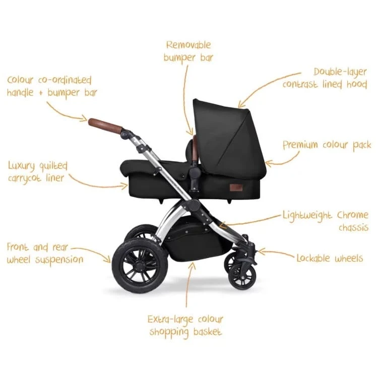 The Stomp V4 Special Edition Travel System comes as an all-in-one package including a Galaxy Group 0+ car seat with its own isofix base along with a host of accessories to make a complete bundle from birth to 3 years.