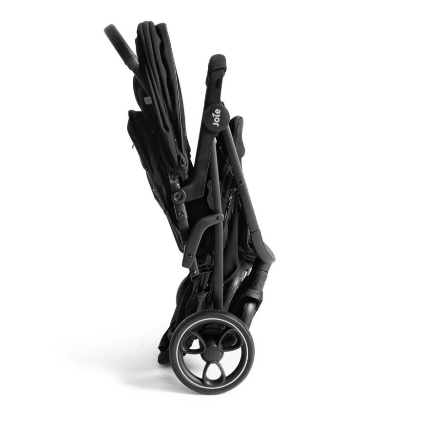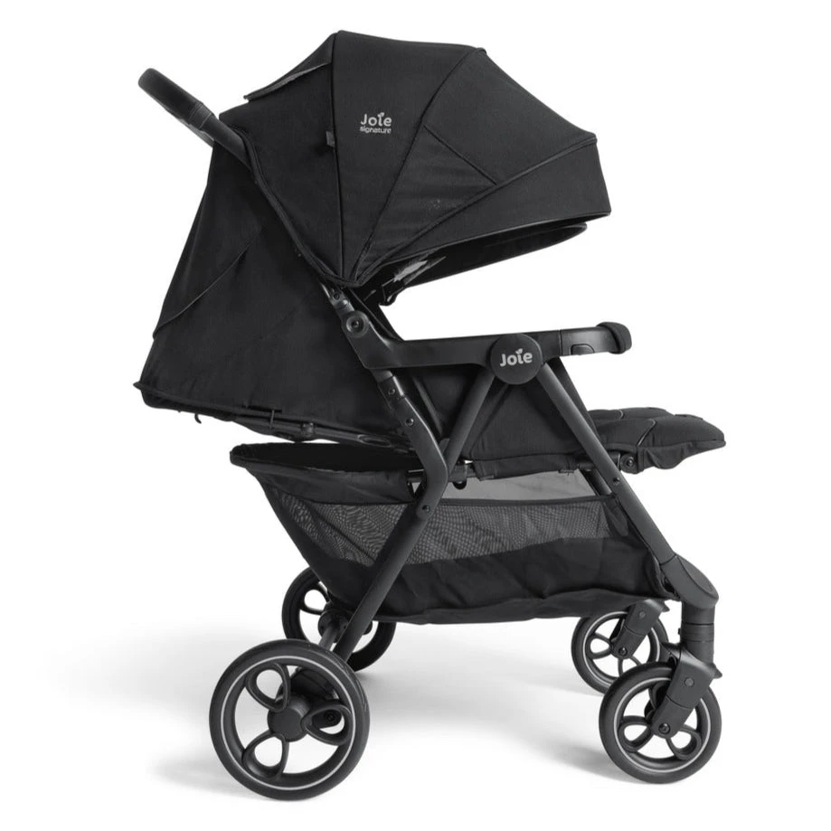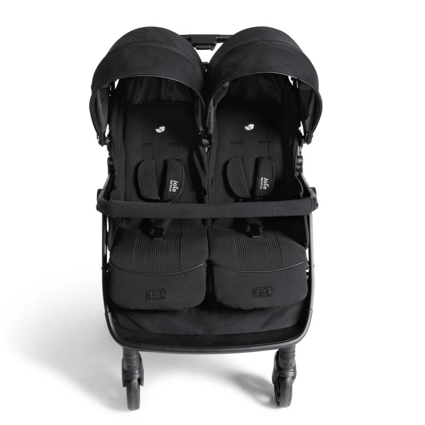 The Joie Estrella Signature Twin Stroller Eclipse is suitable from birth to 22kg (approx. 4 years) per seat. Ensuring a cosy and ergonomic environment for both newborns and toddlers. With all-wheel suspension for a smooth ride over rough terrain, UPF 50+ and water-repellent canopies for sun and weather protection, and a quick, one-hand fold for easy storage