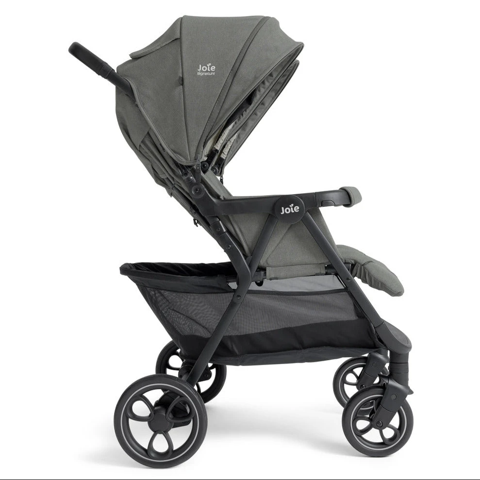 The stroller also includes a spacious storage basket for essentials, raincover and bumper bar