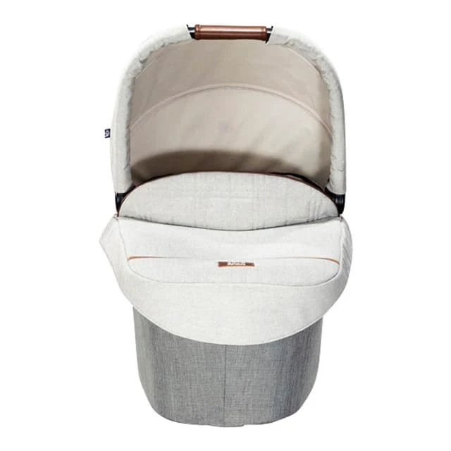 The carrycot has a large UPF50+ retractable canopy with multiple positions and convenient leatherette carry handle. Together with the cool-weather apron provide excellent cover from the wind and rain. The Ramble carrycot set includes a rain cover for heavy showers. At inner foot end, you can also find a storage pocket suitable to put in small items like nappies. The entire unit can be folded for easy and conveniently storing.