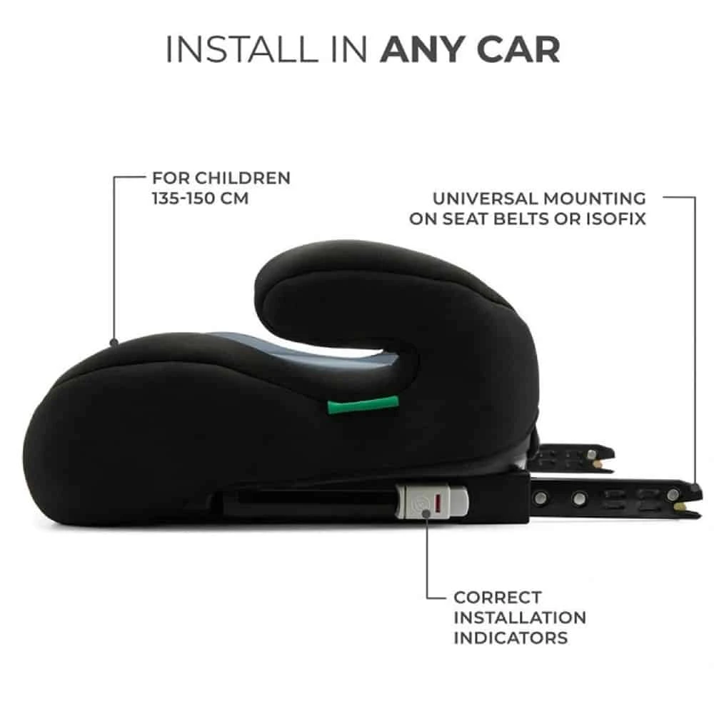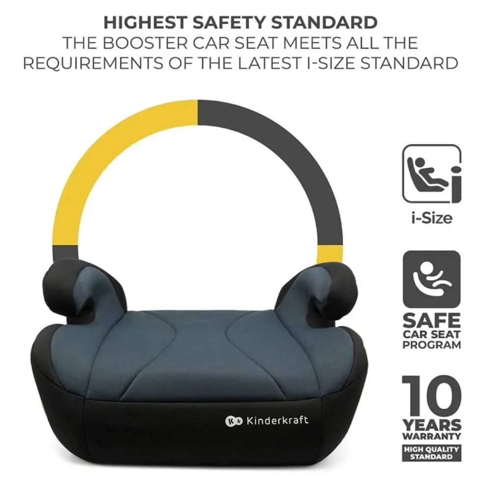 Kinderkraft Car Seat I-BOOST Black i-Size is a perfect solution for children who have already grown out of a car seat but haven’t yet reached 150 cm in height. This booster car seat is ideal for youngsters between 135–150 cm tall, as it guarantees that the car’s seat belt will pass optimally over the middle of the shoulder and chest. It minimises the risk of injury that could arise due to unexpected road incidents.
