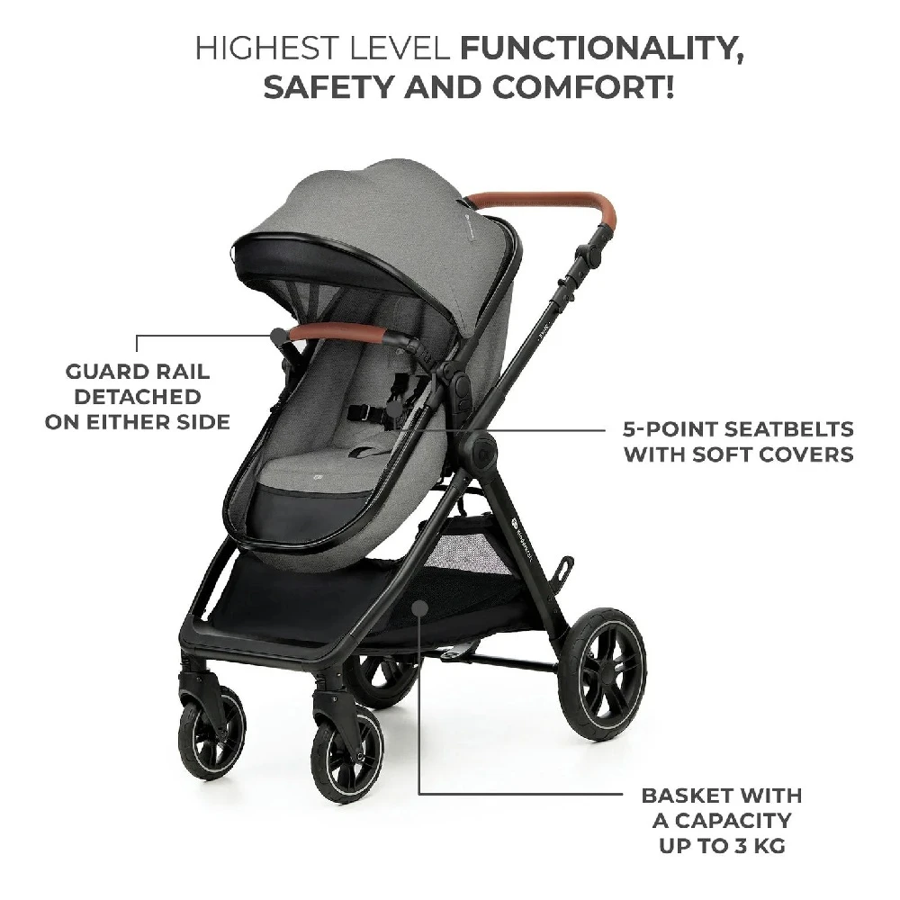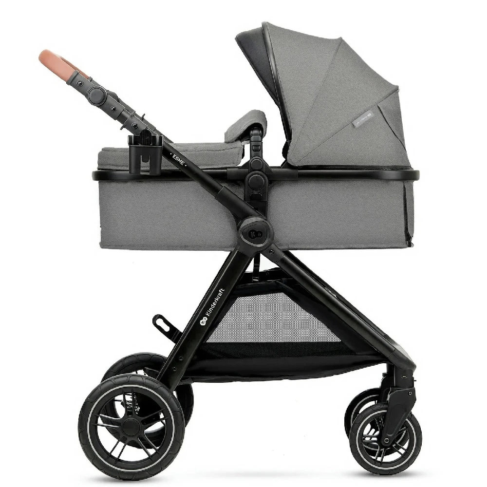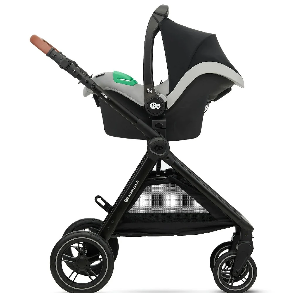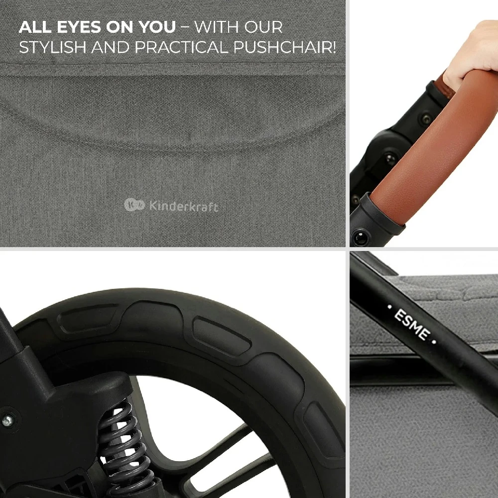 Kinderkraft ESME Travel System Grey is a multifunctional 3 in 1 baby pushchair that will amaze you with its functionality combined with exceptional design. The subdued color scheme, meticulous finish, and eco-leather elements will make your daily walks even more enjoyable.
