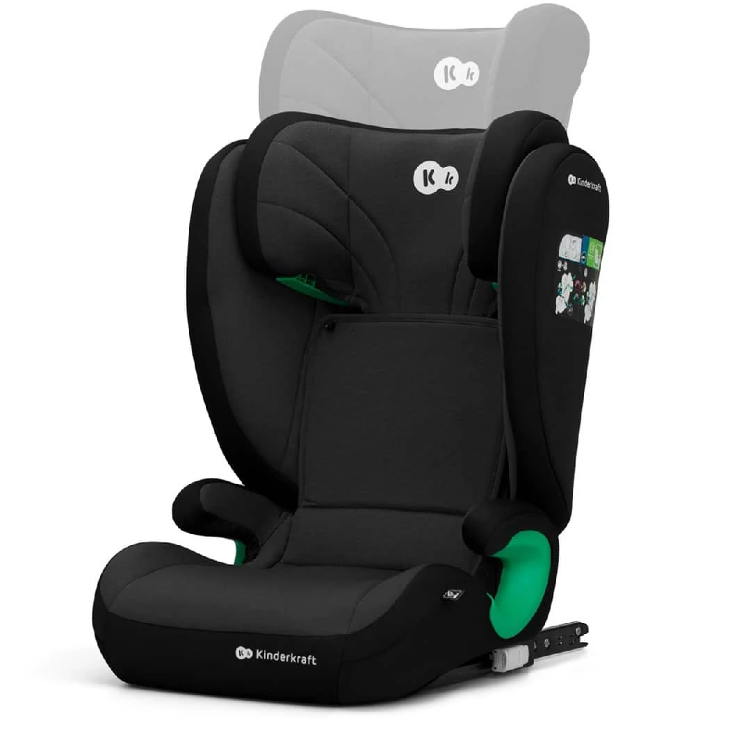 Meet KinderKraft Junior Fix 2 Graphite Black for children of 100-150 cm height (3,5-12 years). It is designed to ensure a safe and comfortable journey for your child.
