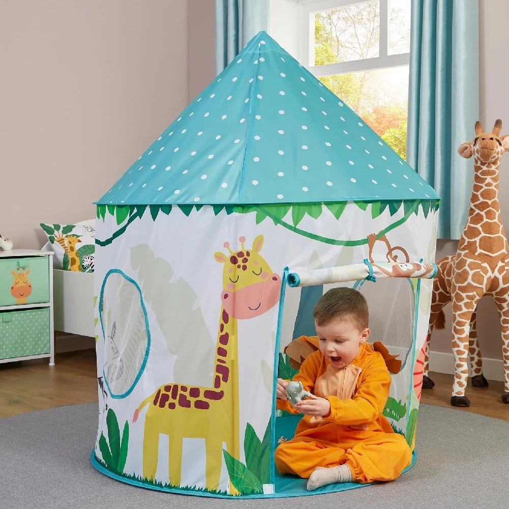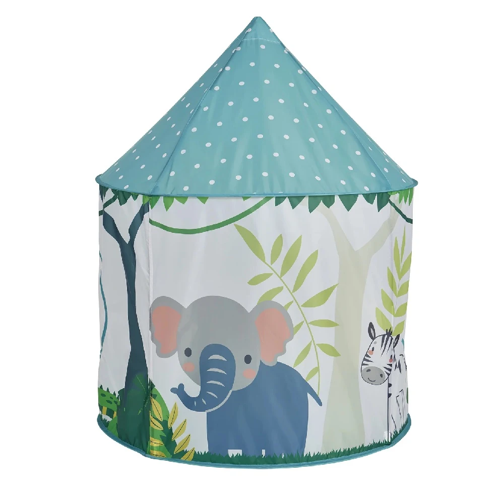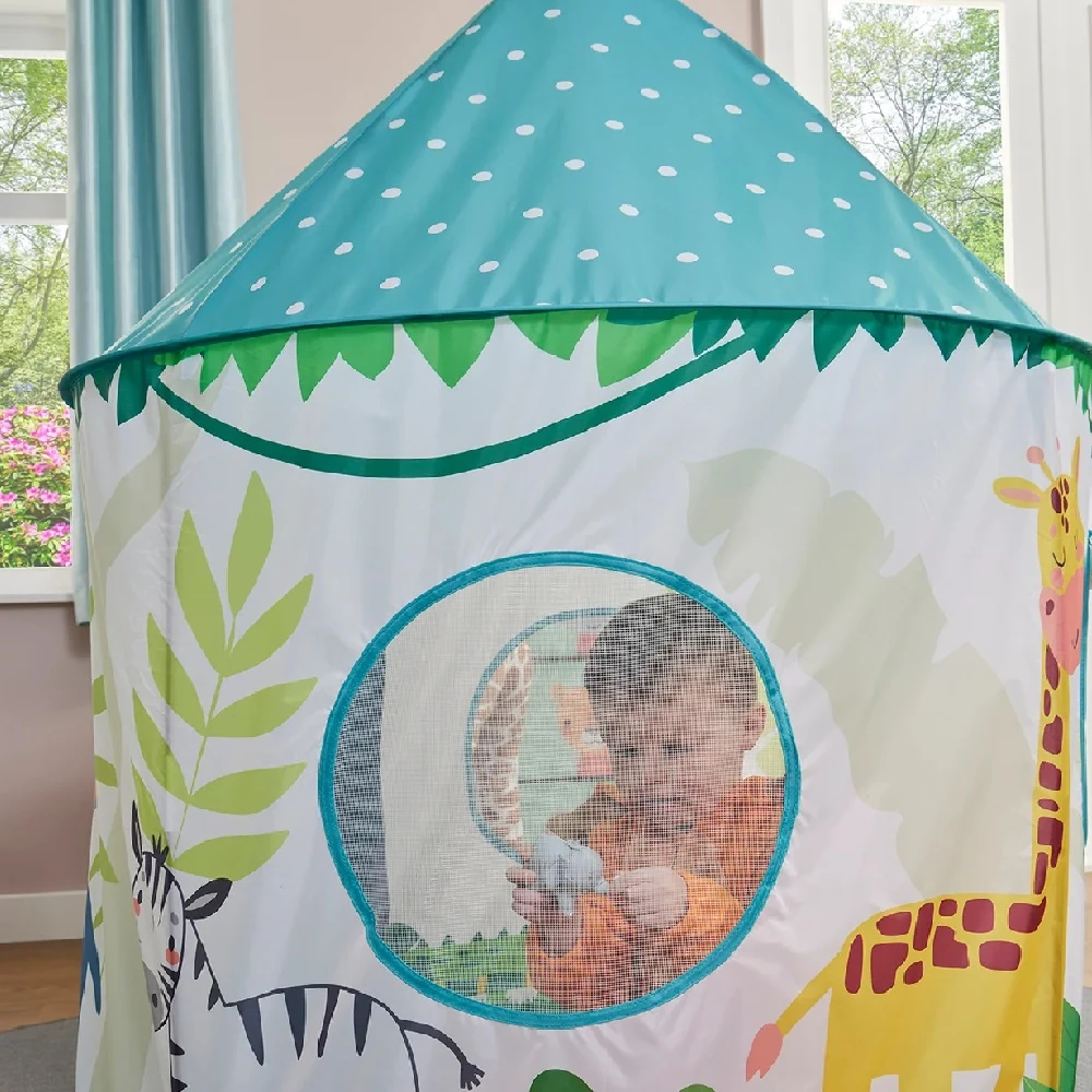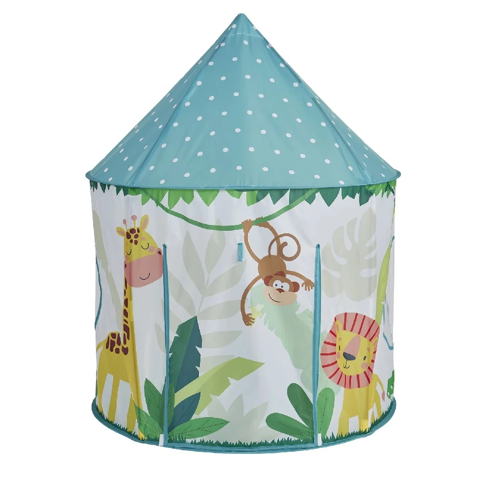 - Kids Jungle Play Tent is made of polyester and fibreglass pole with steel wire, and it comes flat packed with easy-to-follow assembly instructions. Item includes storage bag for when you want to fold it away.