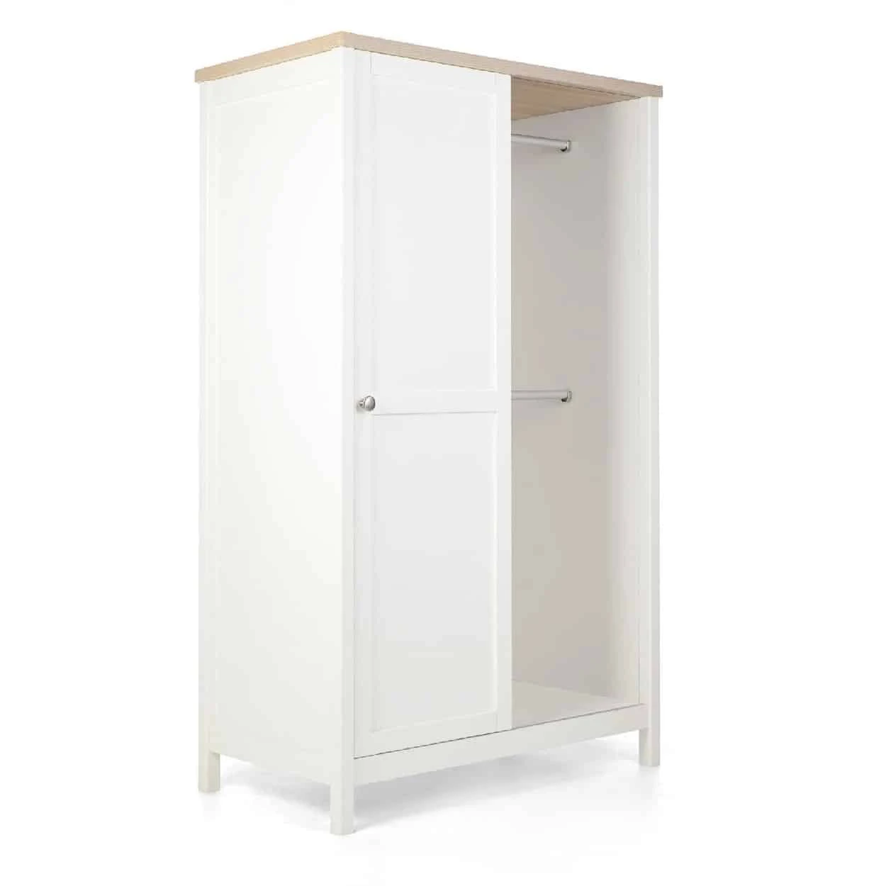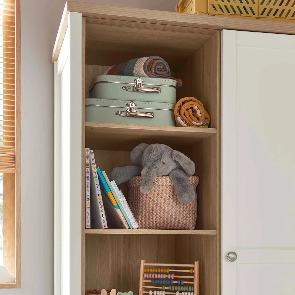 Maintain an impeccably organised nursery with our exceptional Harwell baby wardrobe, designed to keep everything in its rightful place. Boasting a pristine white finish and exquisite two-tone detailing, this nursery wardrobe seamlessly complements the rest of our Harwell range, ensuring a cohesive and stylish nursery aesthetic. You can store anything from baby’s favourite books and toys to clean garments and bedding, thanks to the easy-to-use sliding door, the two removable rails for hanging clothes, and the three removable shelves included in this unit. Additionally, the drawers in the wardrobe include a soft closing feature so that you won’t wake up baby.