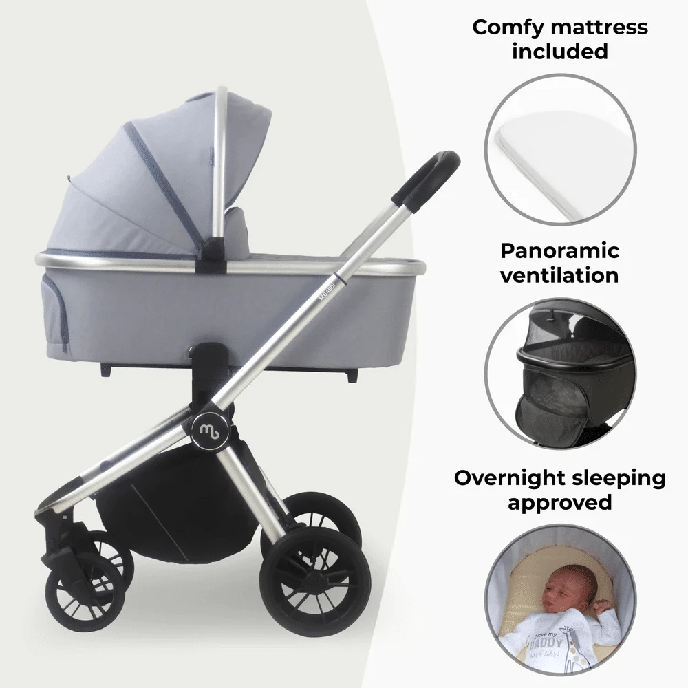The included carrycot in the MB450 3-in-1 travel system provides a comfy place for your newborn to sleep whilst you’re out and about.