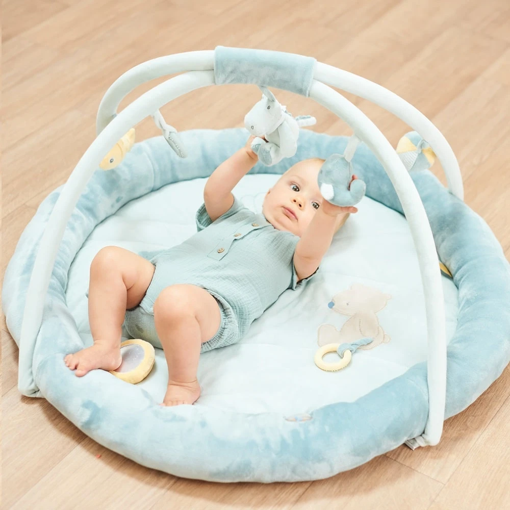 - Playmat with various noises and textures (including detachable overhead toys)
