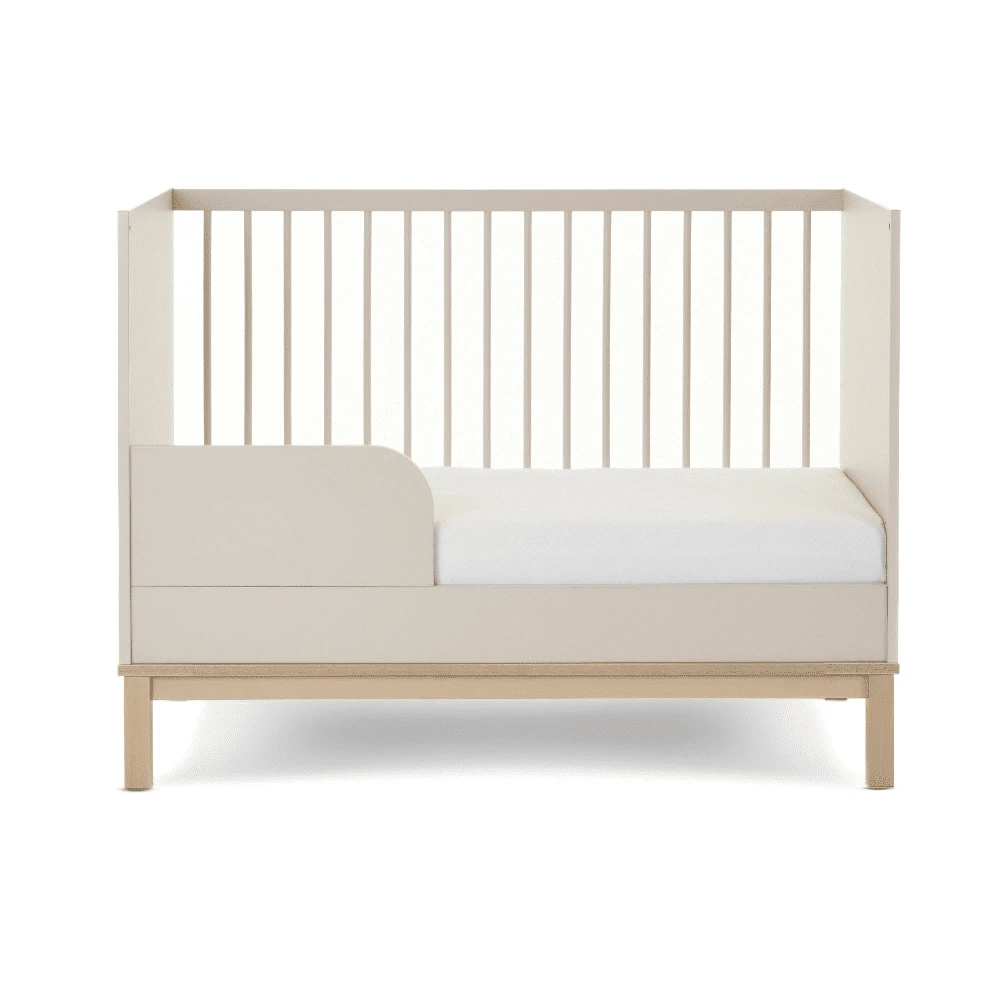The Obaby Astrid 4in1 Cot Bed – Satin/Oak means those with a more compact nursery don’t have to compromise on quality and style. Mini by name, but certainly not by nature! Suitable from birth until approx. 4 years old, the 3-position base height ensures there is a setting for each of your child’s milestones. When it is time to transition to a big bed the included safety rail will provide reassurance and familiarity during an often-daunting time.