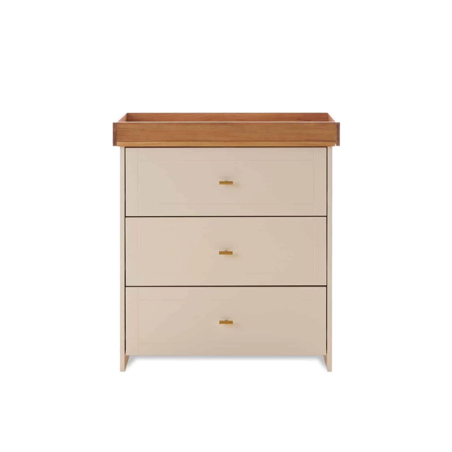 The three large drawers fronted by stylish brass handles provide plenty of storage. While the beautiful natural wood changing top is removable. So, when your little one has grown, you are left with a beautiful chest of drawers that will compliment any room of the house for years to come.