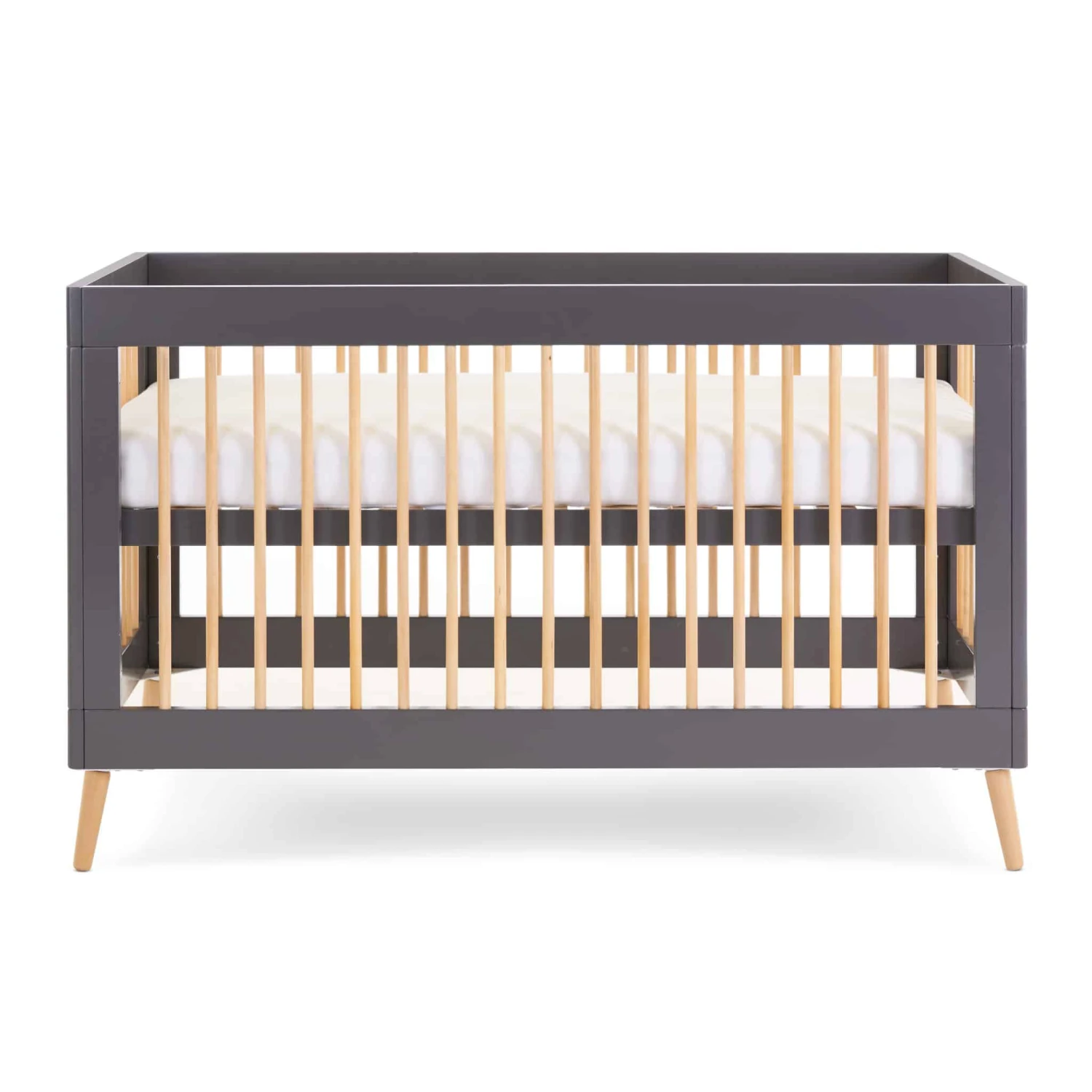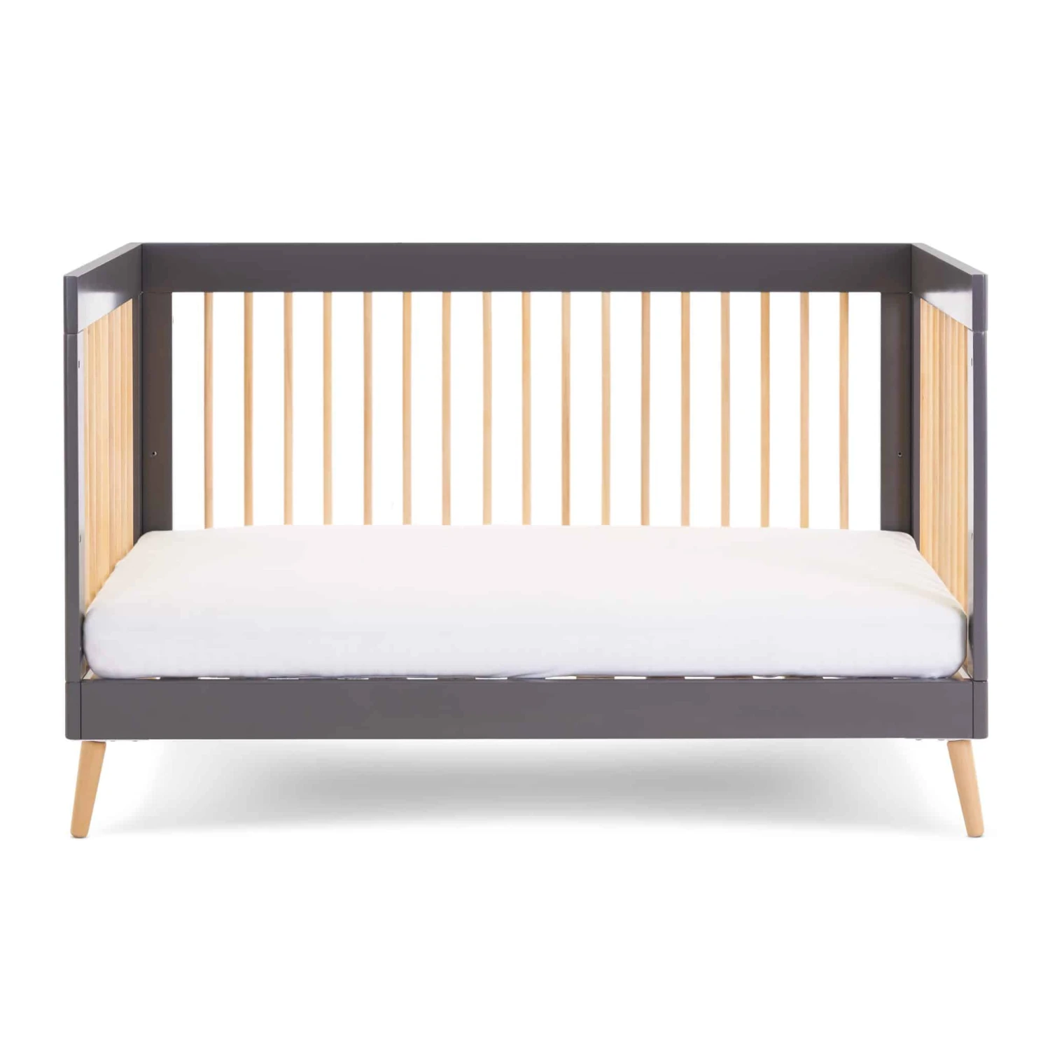 Suitable from birth, the Maya cot bed will grow with your little one. The top position of the three height-adjustable mattress base allows you to put down your baby with less pressure and strain applied to your back and as they develop and start to find their feet, you can maintain their safety by lowering the base. When your little one is ready to begin their transition, the included dual ended safety rail will provide reassurance and familiarity during an often daunting time and once they are used to their “big bed” this can be simply removed to create a stylish toddler bed.