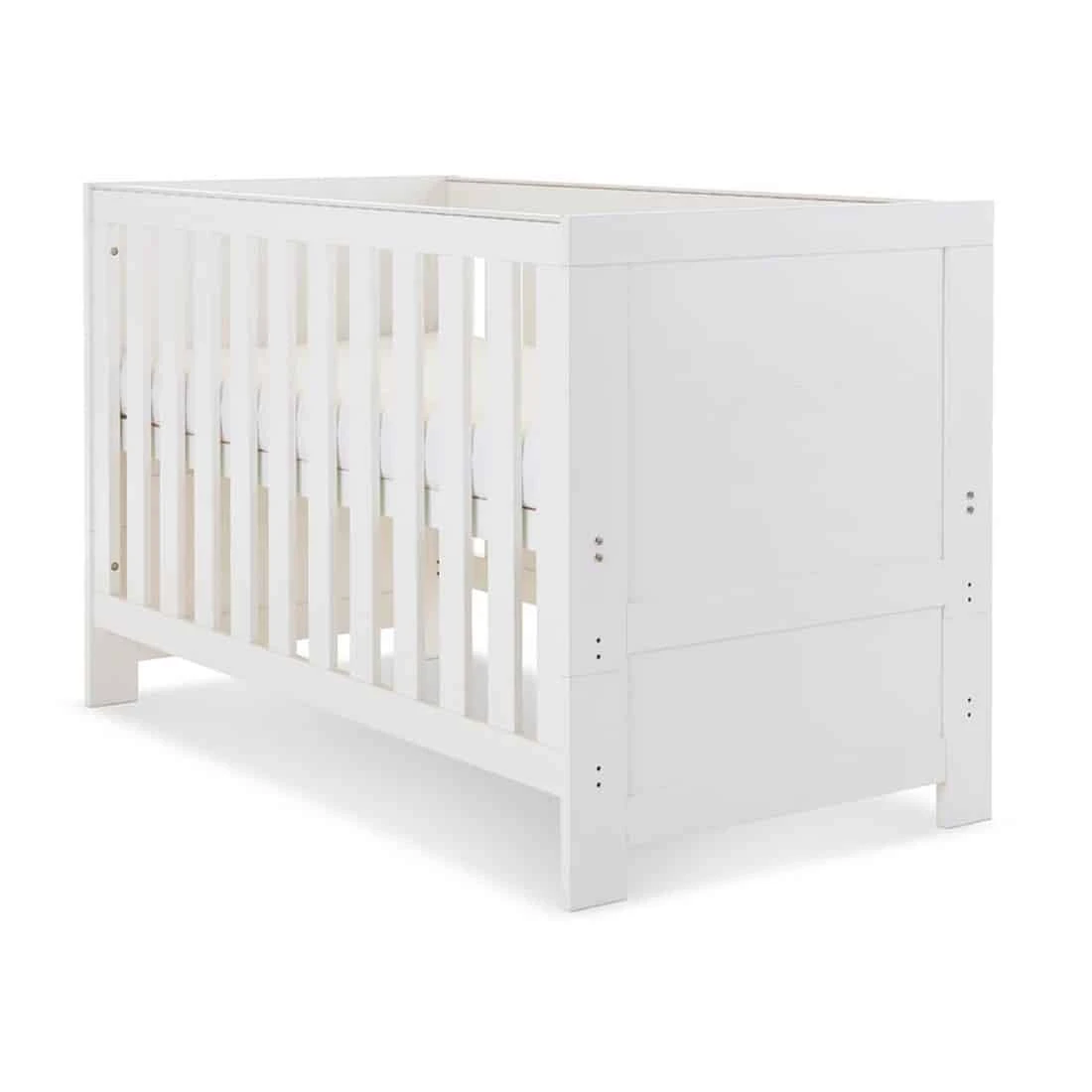 The Obaby Nika Cot Bed White Wash offers a contemporary design.Β This is due to its clean lines and textured oak effect finish, that will fit perfectly in todayβs modern nursery.