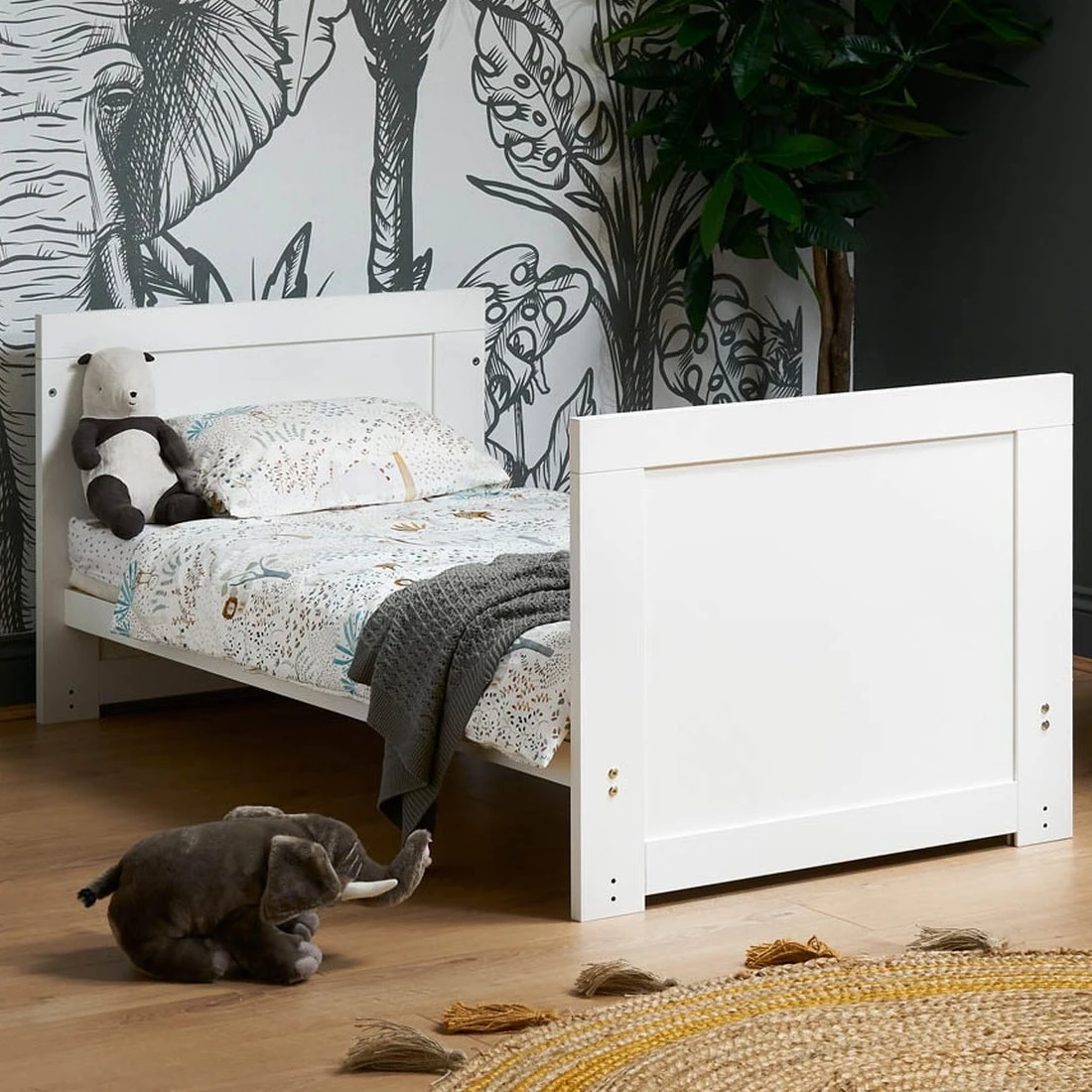 When your little one is standing confidently, the Nika can be easily transformed into a stylish toddler bed.Β The Nika Requires an Obaby 140 x 70cm mattress, available separately.