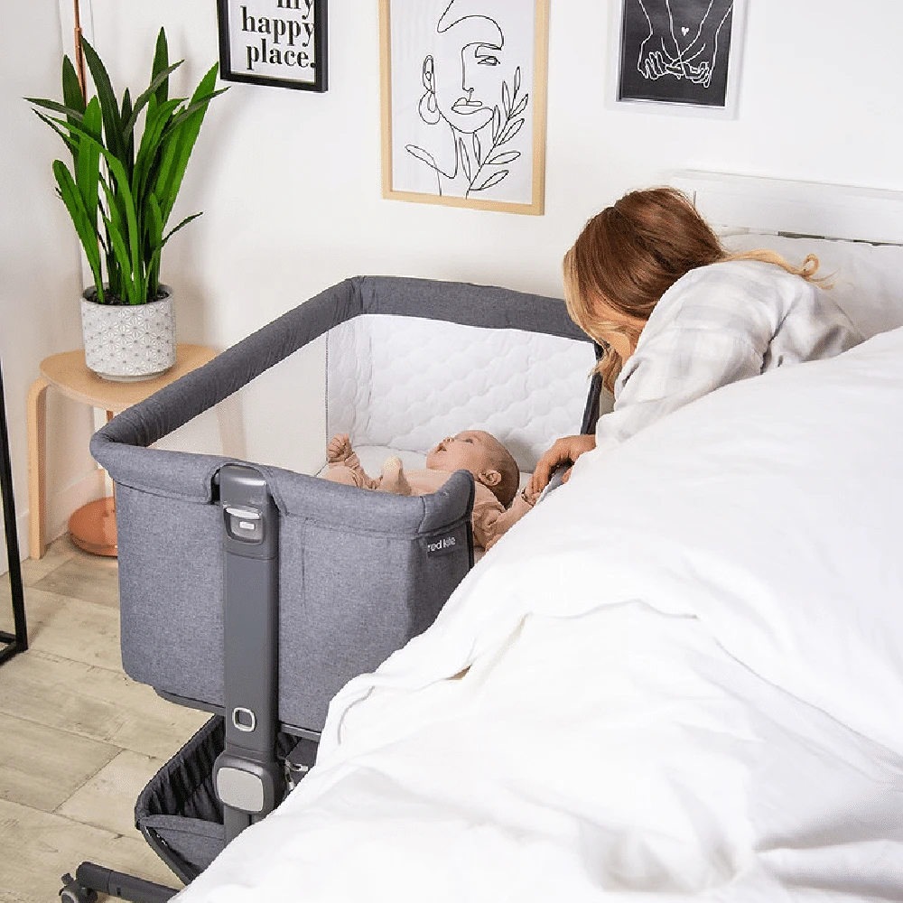 The stylish Red Kite Cozysleep Bedside Crib Grey provides both crib and co-sleeper functions and will look fabulous in any home setting. Drop side features enable bedside sleeping which not only helps develop a strong bond with baby but allows peace of mind knowing your baby is safely next to you.