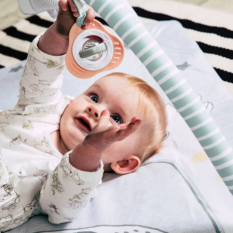 Red Kite Tree Tops Play Gym is a great first play gym featuring the new Tree Tops design. Soft muted pastel shades with cute characters to make new friends with. Generously sized and padded floor mat to make sure baby is safe and supported.
