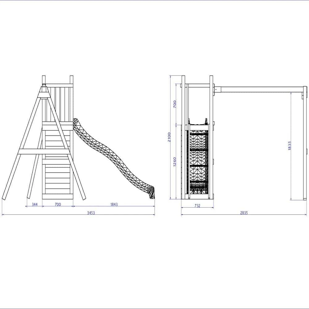 This set has a tower, ladder, rock climbing wall, slide, and two swings. This dynamic equipment offers endless fun and adventure. Crafted for durability and imaginative play, it’s a must-have for every garden.