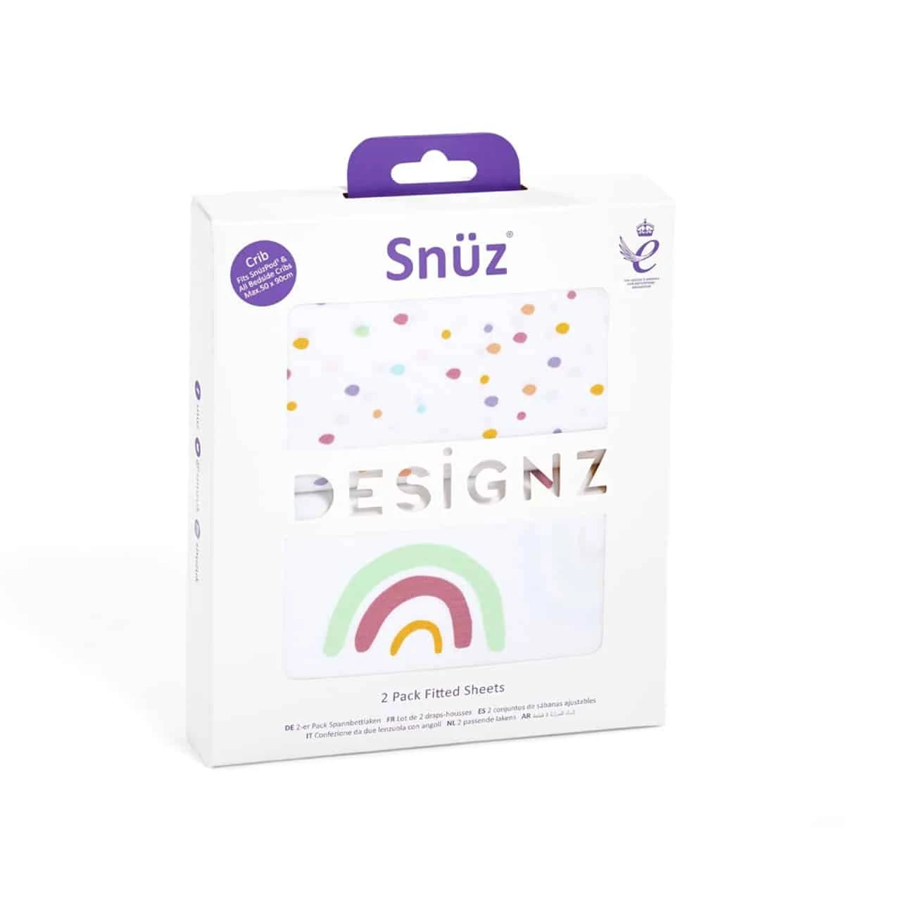 Snuz Crib 2 Pack Fitted Sheets Multi Rainbow