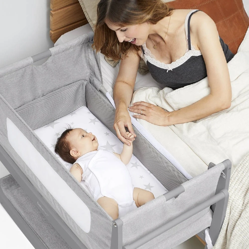 The SnuzPod 4 fits more beds than any other bedside crib on the market with a maximum adult mattress height of an incredible 73cm. The SnuzPod 4 meets the new bedside crib safety standard BS EN 1130:2019 and now features a zip-down half-height wall for easy access to your baby and optimal safety. Ensuring your little one gets the ideal night’s sleep, the SnuzPod 4 has built on the SnuzPod 3’s already outstanding features and still includes the soothing anti-reflux incline function which reduces reflux symptoms and provides additional comfort, lightweight lift-off bassinet for convenient use around the house or when visiting friends and family and a rocking stand.