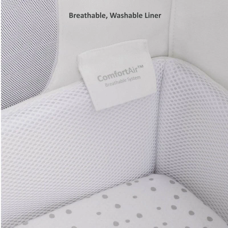 The SnuzPod 4 has improved on the already extraordinary SnuzPod 3 with fantastic advantages for parents and features that guarantee the SnuzPod 4 is the ultimate sleeping environment for your baby. The SnuzPod 4 boasts the innovative ComfortAir Breathable System which encourages healthy air flow and improves breathability that assists with your baby’s temperature regulation as a result. It includes mattress-level air flow vents, a super supportive mattress with 3D breathable mesh cover, upgraded base ventilation and a machine washable padded mesh liner.