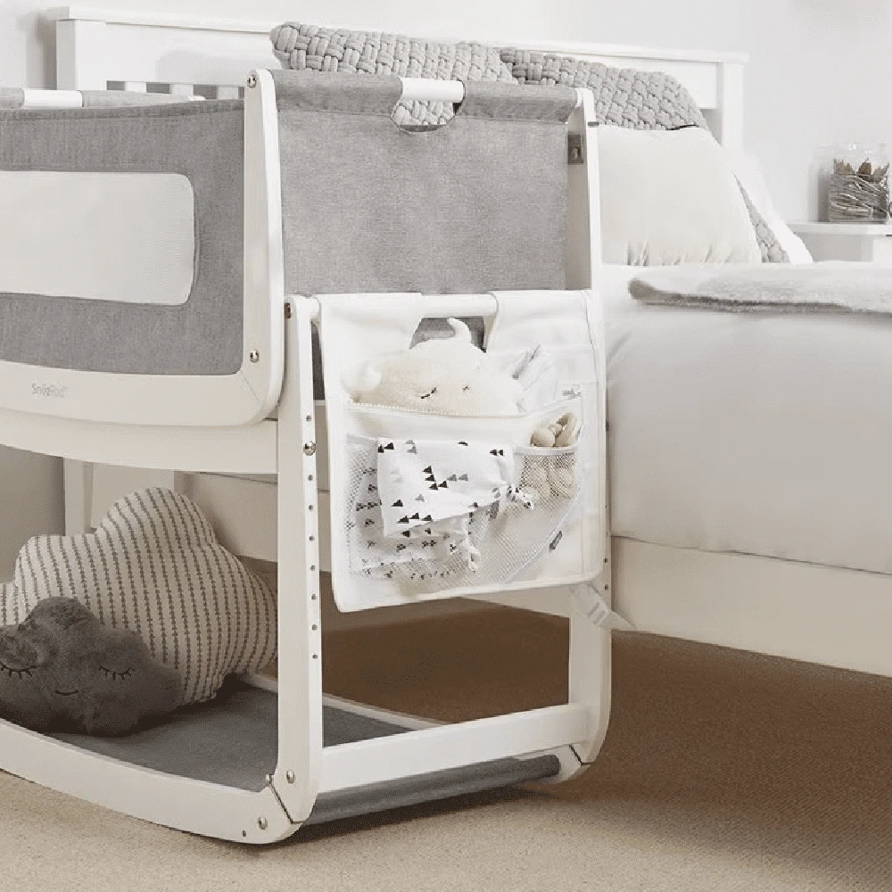 The SnuzPod Storage Pocket Grey is a clever storage accessory and the perfect partner for the all-new SnuzPod4. This handy Pocket holds all the essentials you and your baby need during the night, all within arm’s reach.