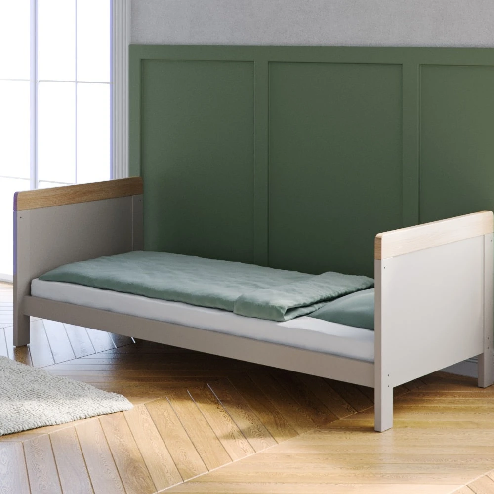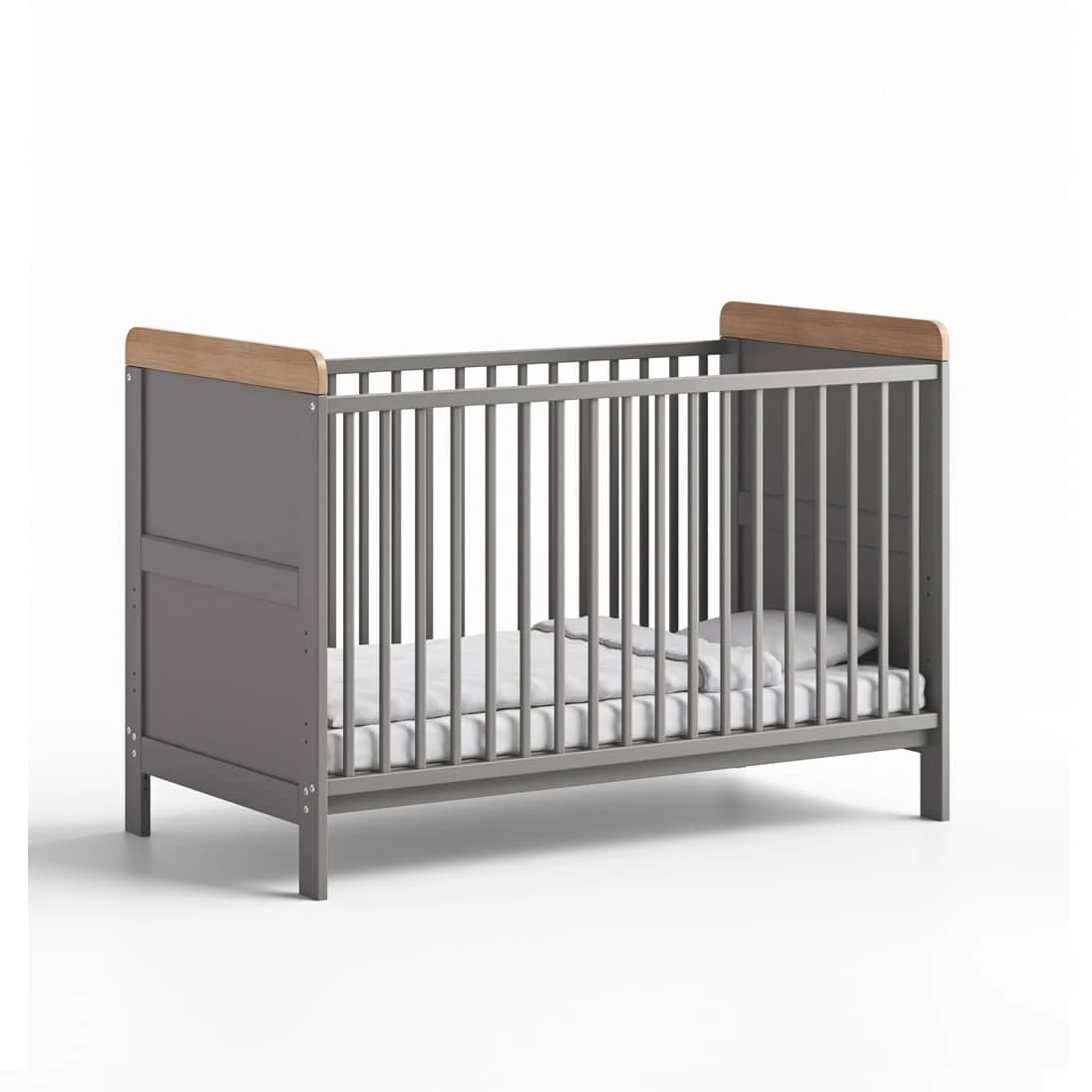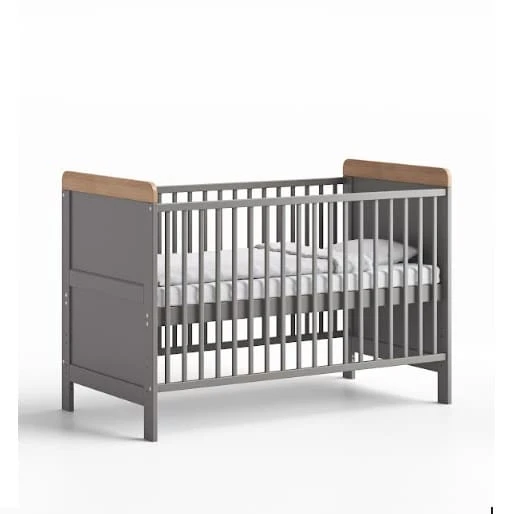 The stunning Belstone Cot Bed Dove Grey and Oak has a contemporary look. This modern cot bed features a 3 height adjustable base which can be lowered as your little one grows. Due to the 3 handy adjustable base height settings, you can easily pop baby down for a nap without disturbing them or hurting your back.