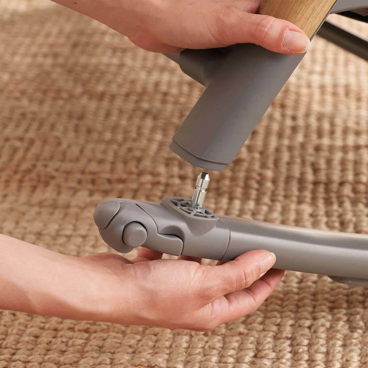 The Bassinet mode Bed is a perfect solution to watch you baby while working or relaxing in the living room. A gentle rocking function will help you to soothe your little one to a sweet nap. When your child falls asleep you can lock the rocking bars to set the bassinet in standing mode. You can also remove the rocking legs to create a stationary version of the Cozee XL bassinet.