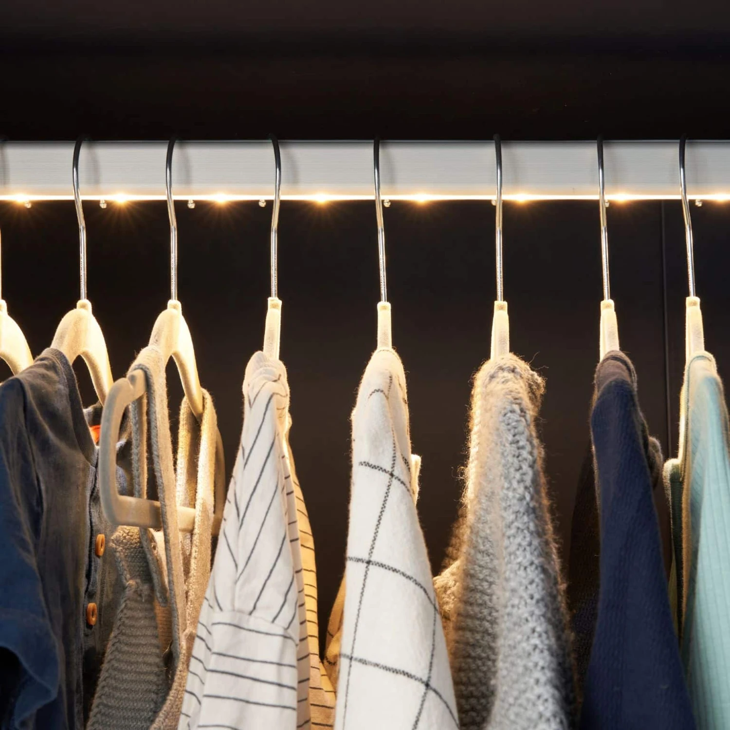 - Wardrobe features motion sensor lighting for night time changes.
